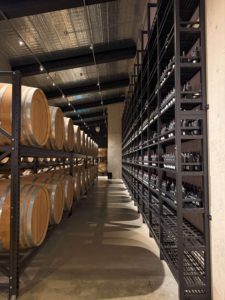 焼酎のオーク樽が並んでいて、