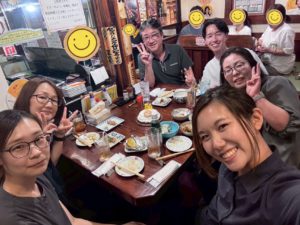 お盆休み前のお疲れ様会でみんなで焼鳥へ